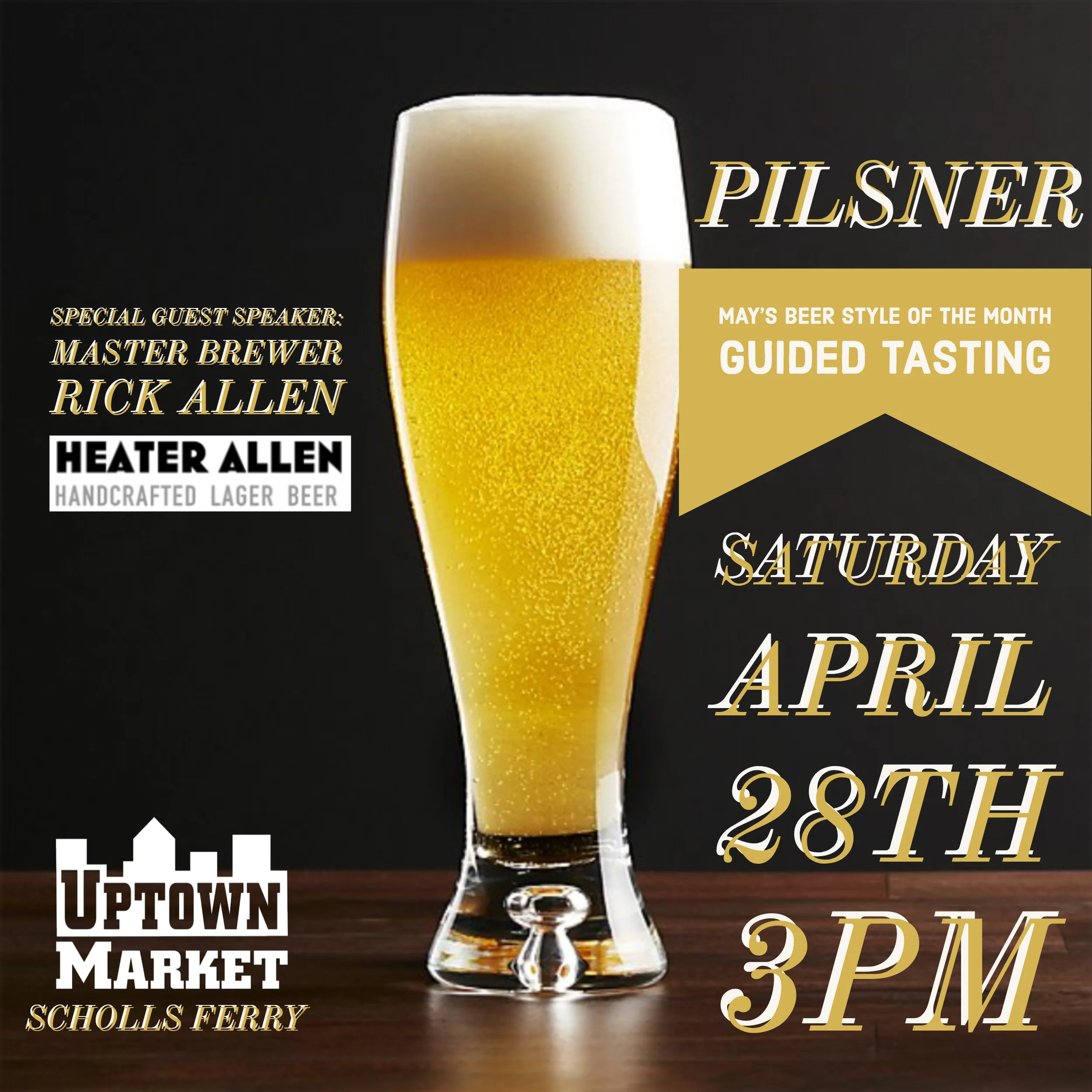 Join us at Scholls Ferry on Saturday April 28th at 3pm for a Guided Tasting with Master Brewer Rick Allen of Heater Allen brewing.